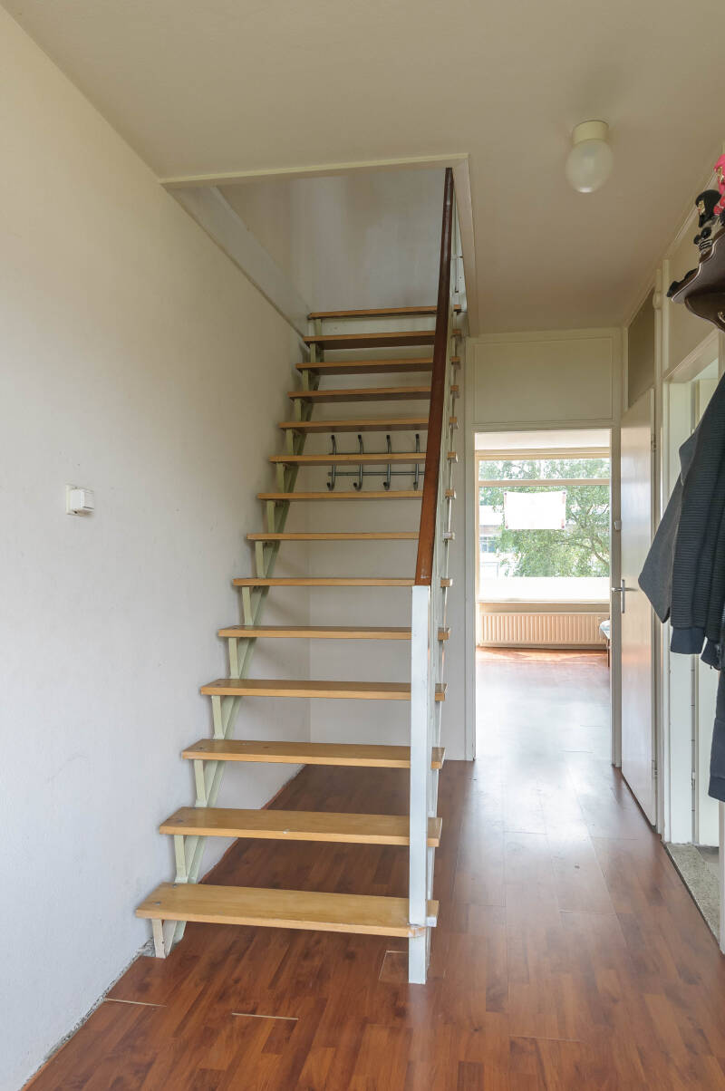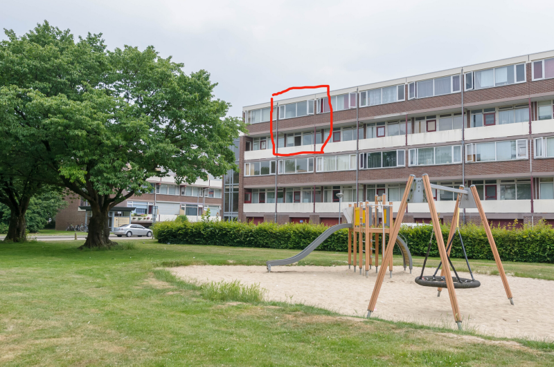 Nabij winkels en scholen via lift te bereiken op de 3de en 4de verdieping gelegen ruime maisonnette met balkon op het zuiden en berging op de begane grond.